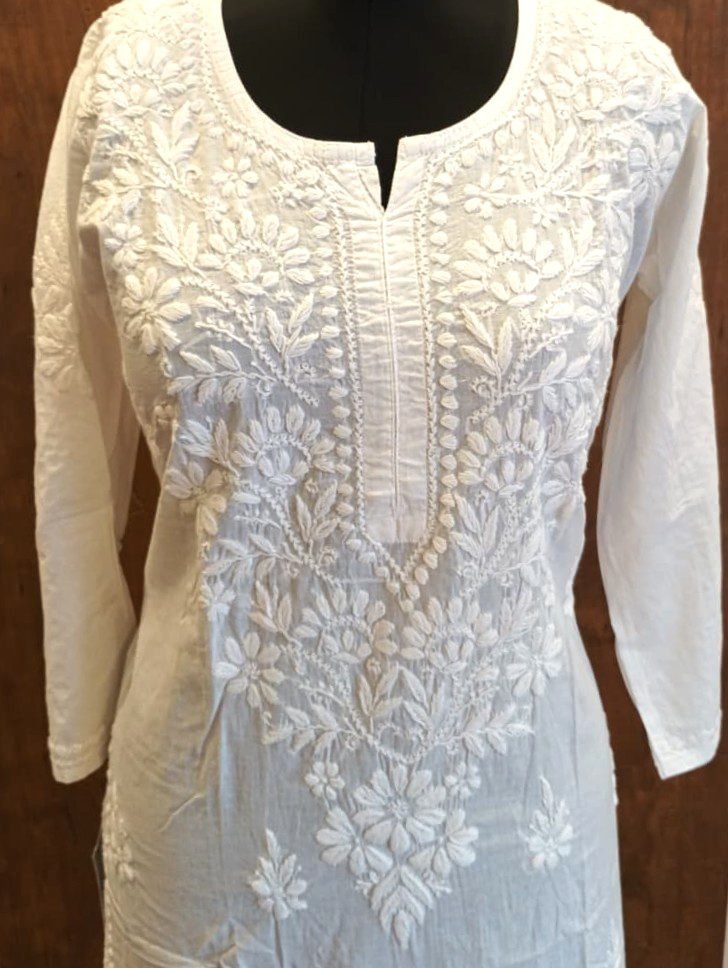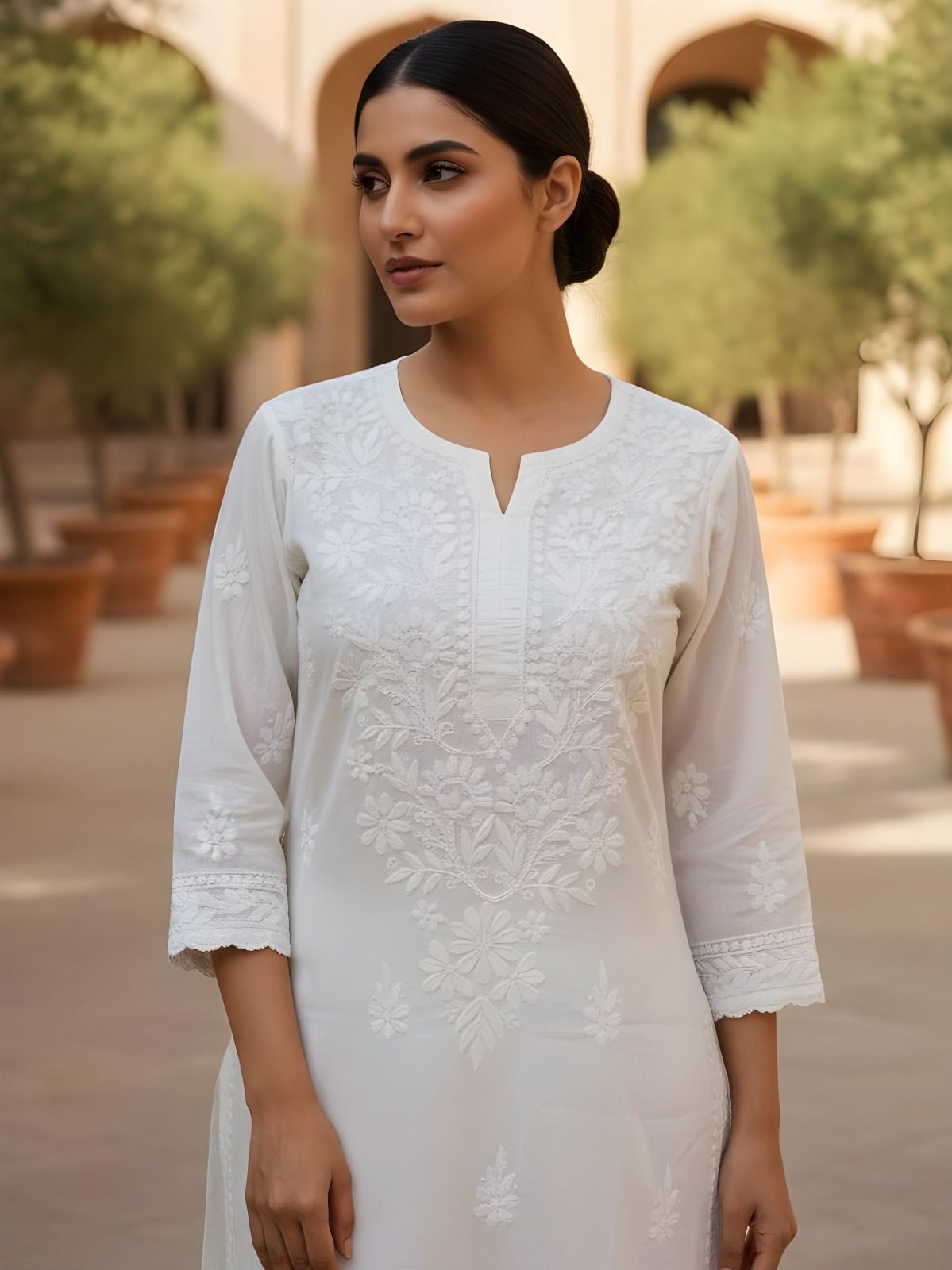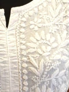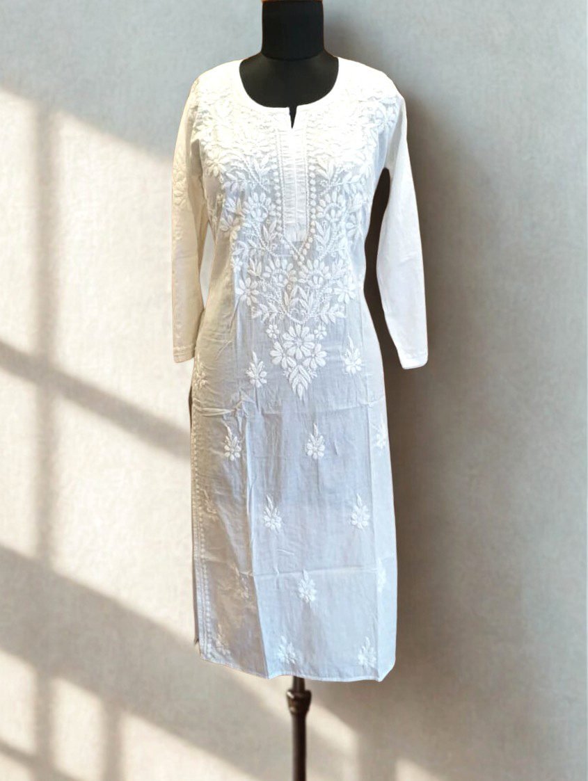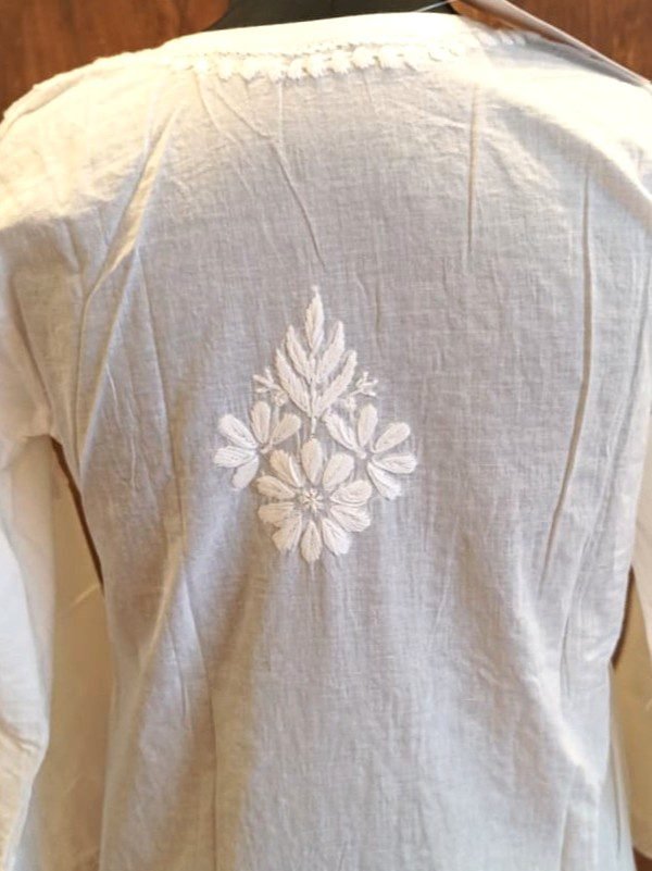 White Cotton Kurta with White Chikankari Hand Embroidery