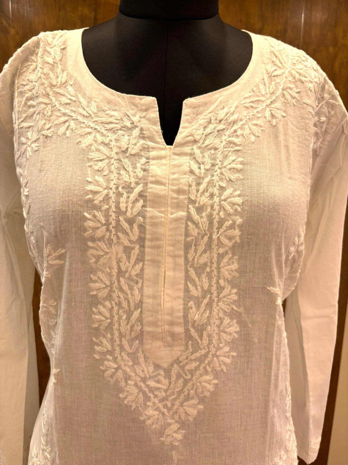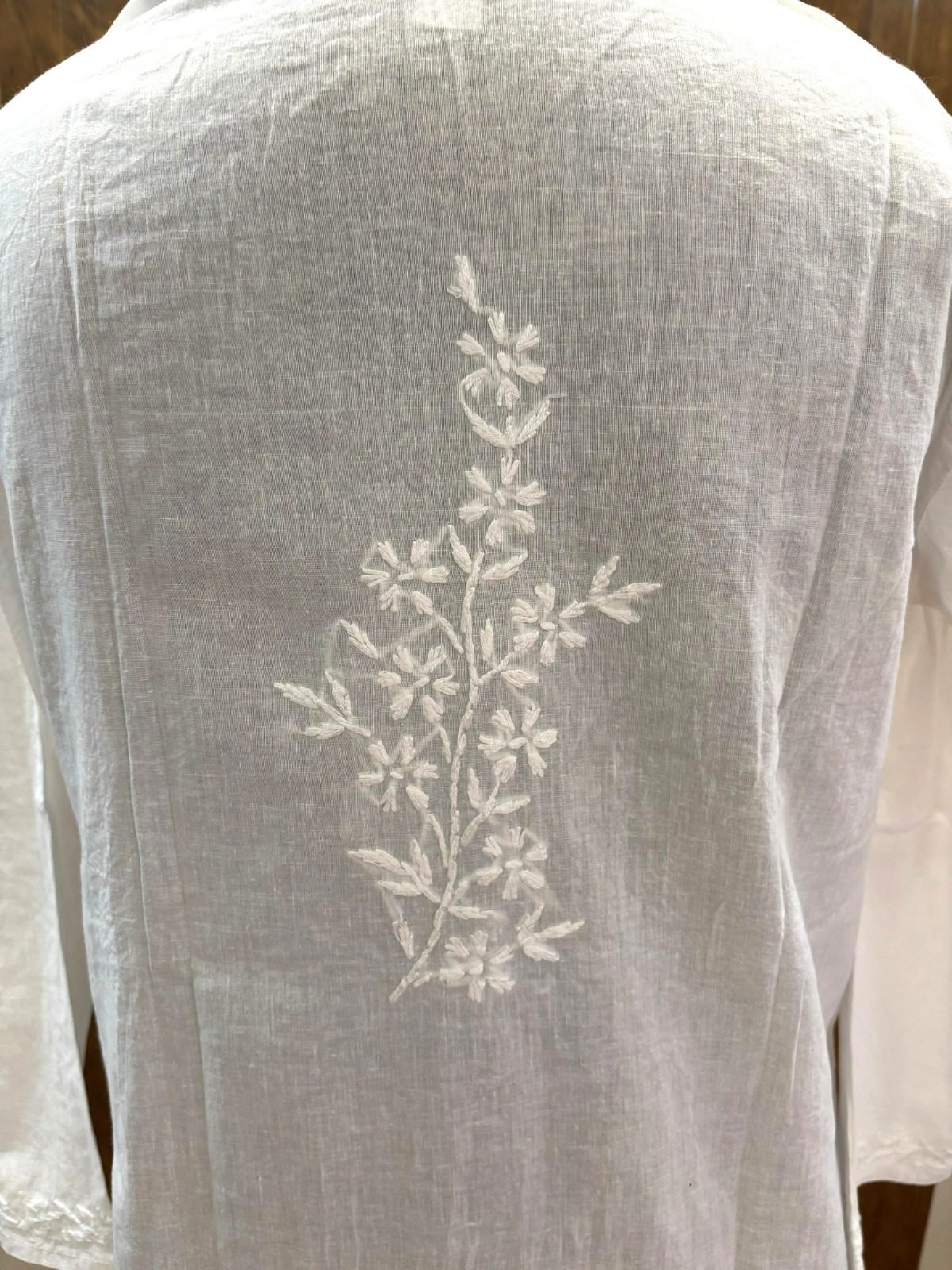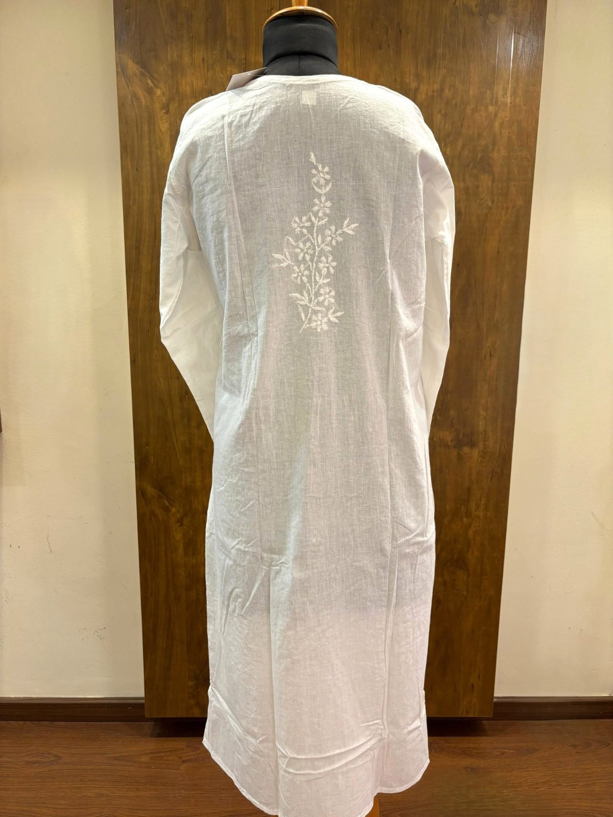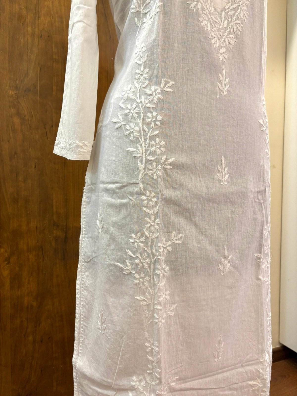 White Cotton Kurta with White Chikankari Heavy Bel Hand Embroidery