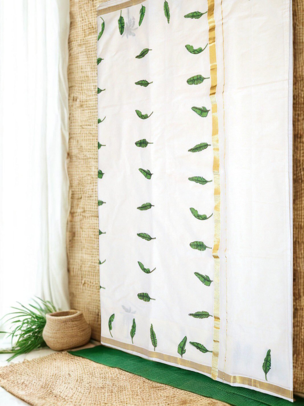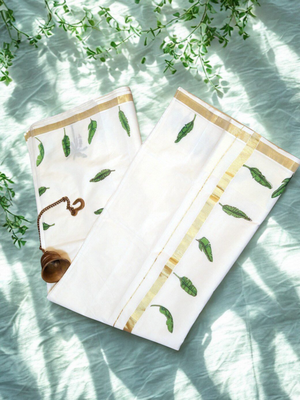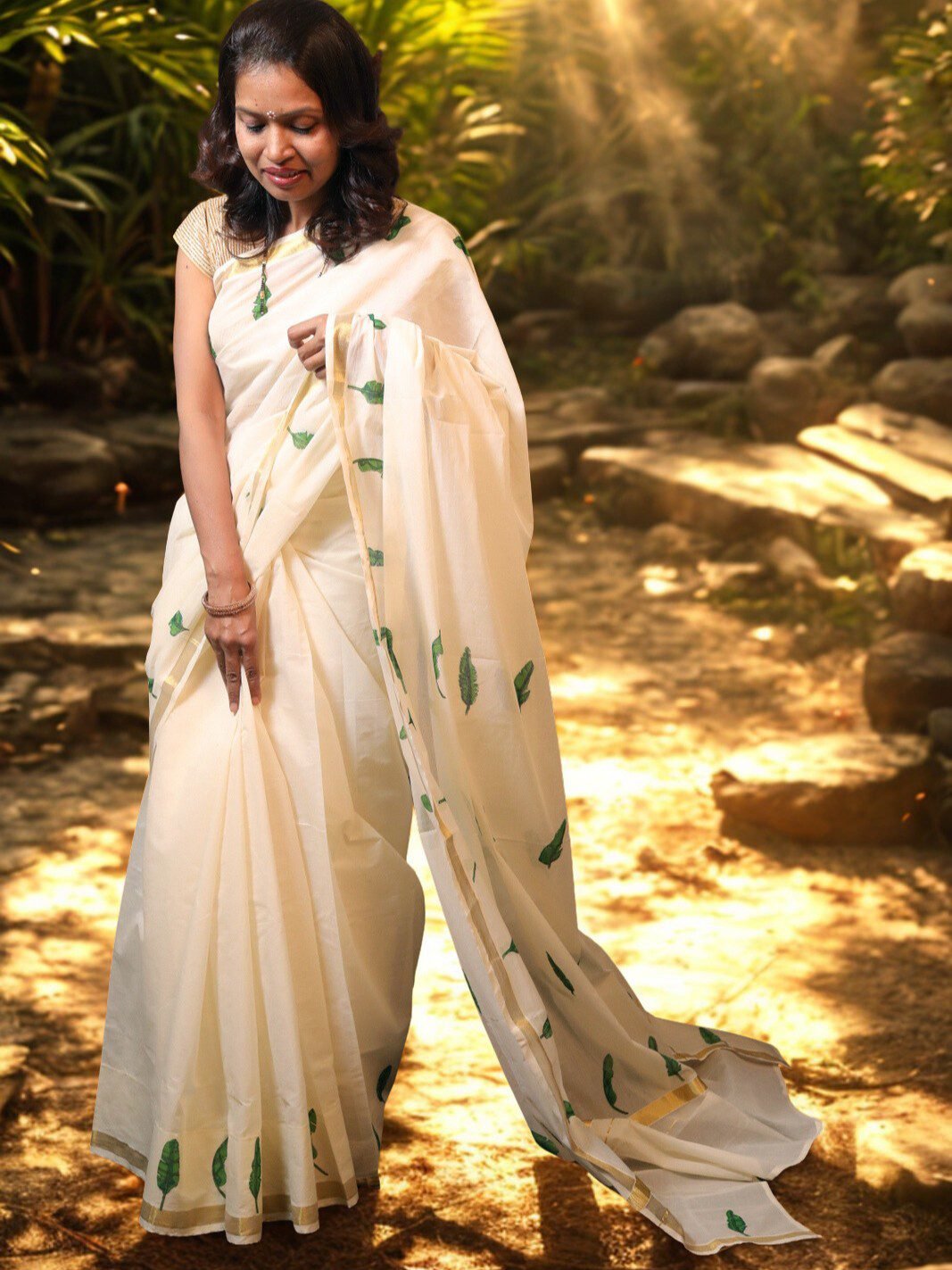 Cotton Kasavu Off White Handloom Designer Saree with Banana Leaf Motifs