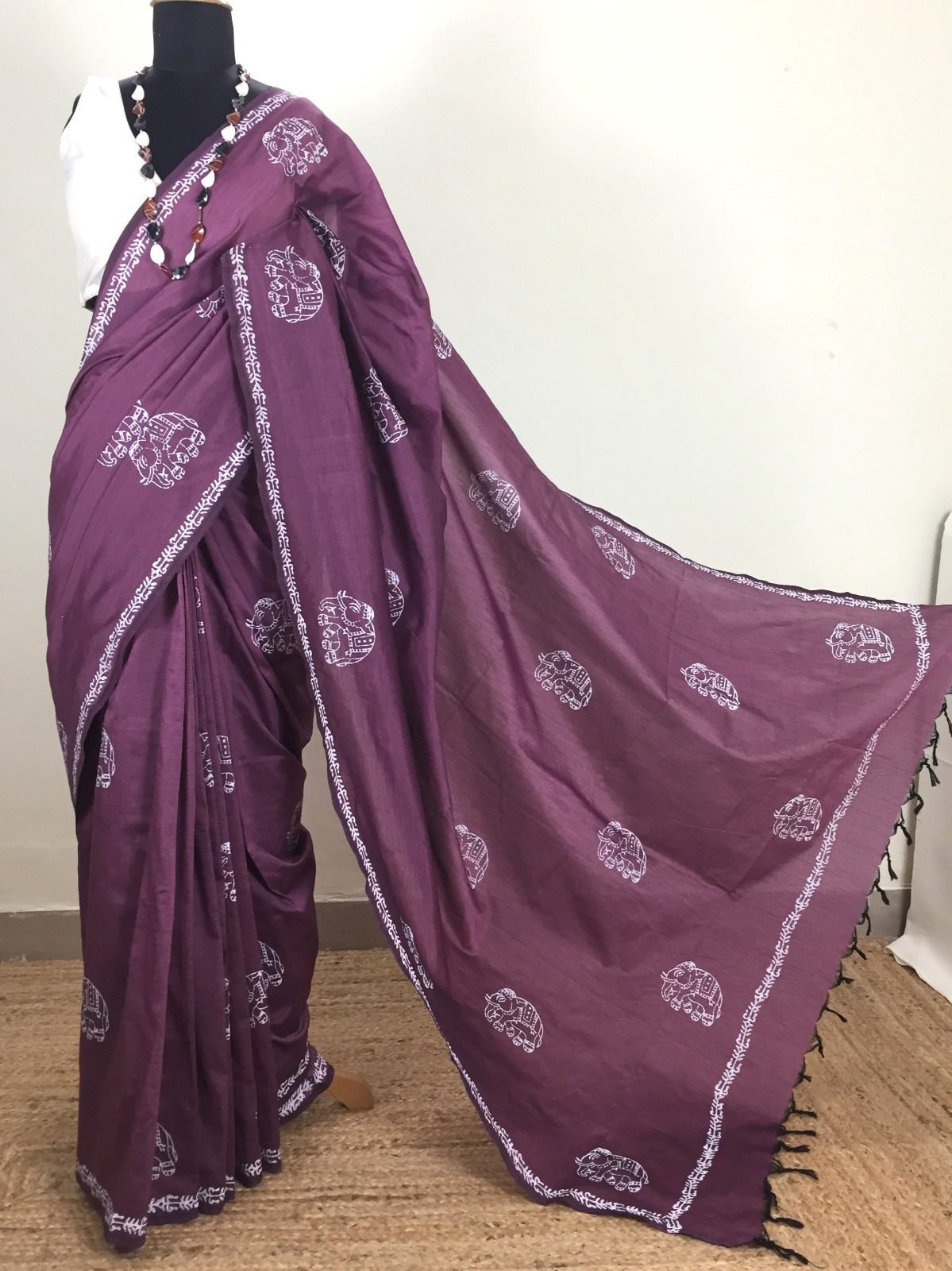 - Color:Â Plum with white handblock prints