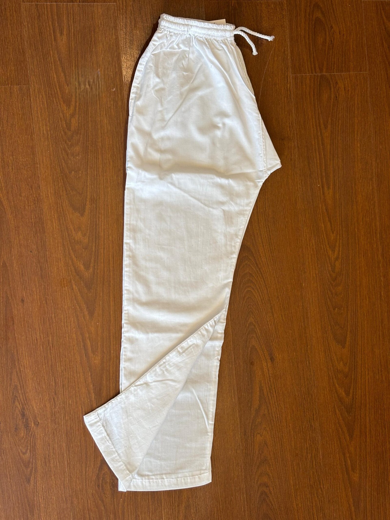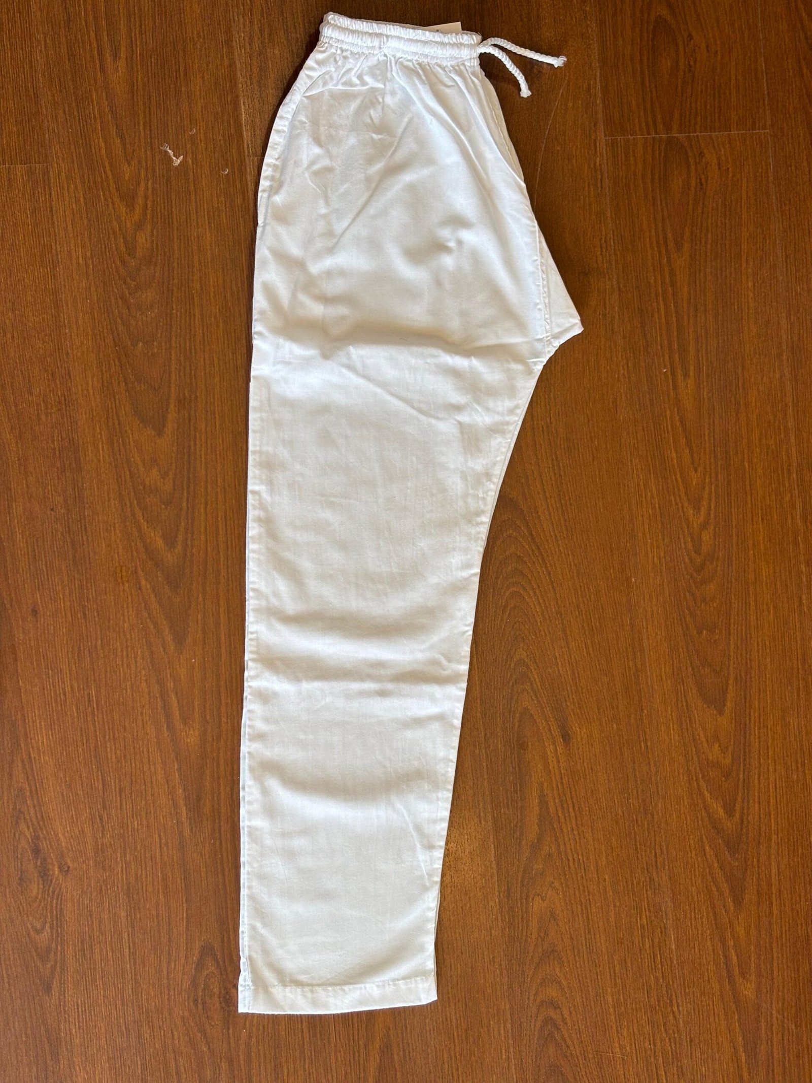 Crafted from 100% pure cotton, these classic white drawstring pants offer unmatched comfort and breathability. The soft, lightweight fabric ensures ease of movement, making them perfect for everyday wear, lounging, or casual outings. Designed with a relaxed fit, they feature an adjustable drawstring waistband for a personalized fit and side pockets for added convenience.